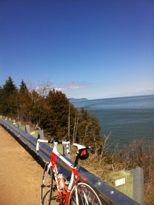 Super fin de semaine d’entraînement. Pendant que ma blonde est au casino, j’ait fait La Malbaie Baie St-Paul aller-retour par un temps frais parfois venteux et ensoleillé. De belles côtes musculaires, paysages majestueux comme seul Charlevoix peut procurer.